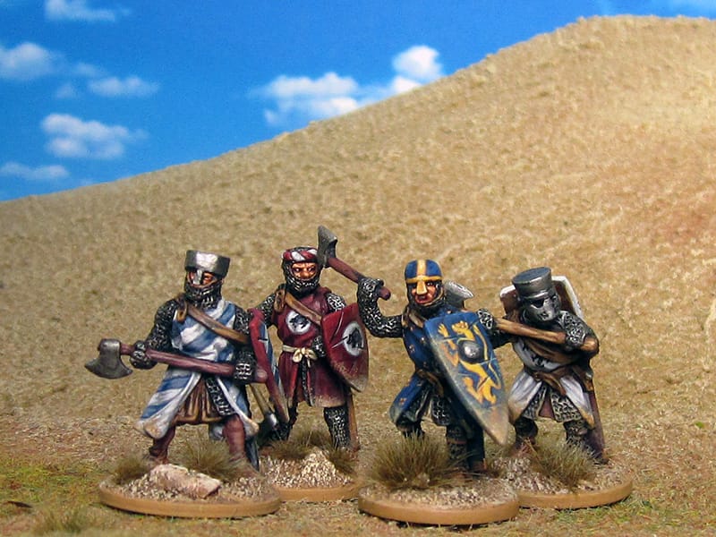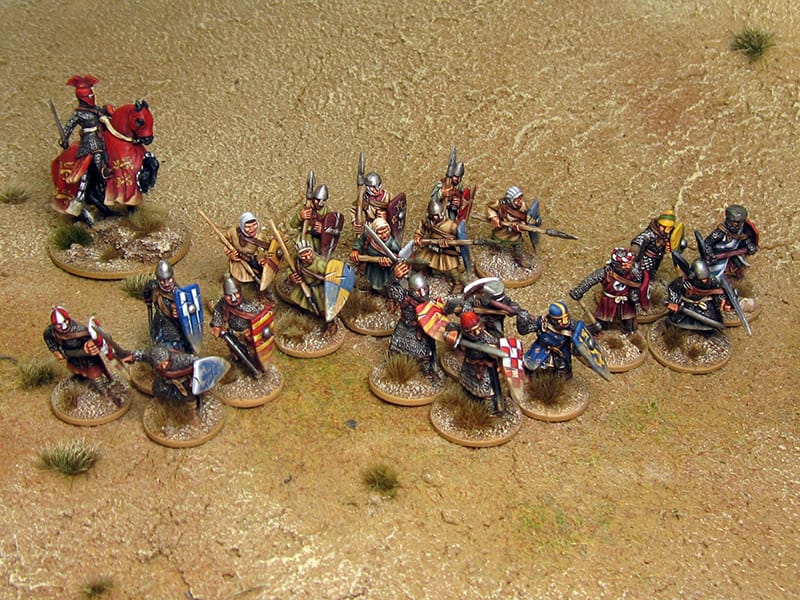 Still low-level I decided to create a Rampant-SAGA-whatever-skirmish-type warband. Yes, I'm only pretending to build forces for a specific game – shock, horror! Yet in terms of the all-favourite SAGA the following warband amounts to four points, comprising three units of "heartguard" (knights on foot) and one unit of "warriors" (retainers) as well as a "warlord" (perhaps only disguised as Ol' Dick Cœur de Lion).