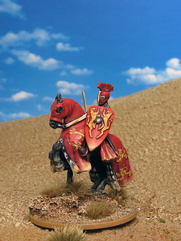 Really impressive! Lots of spirit (for want of a better word) in those figures. I especially like the one with the blue-and-white striped livery (if livery is the right term for that garment) and the one next to it with the sublime reddish-brownish-purple and the animal emblem. The winged helmet is a eyecatcher, too.