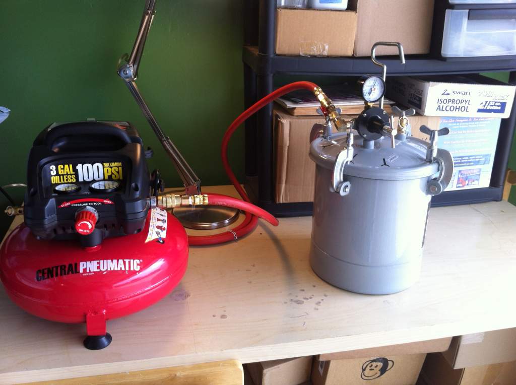 Speaking of pressure pots,  I've been getting my pressure pot and compressor set up while I wait for my order of the mold making and casting materials to be delivered.
