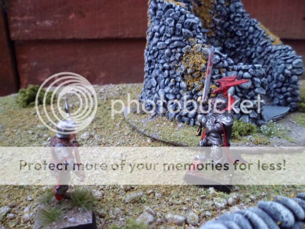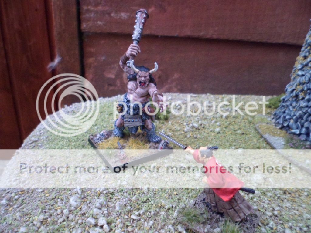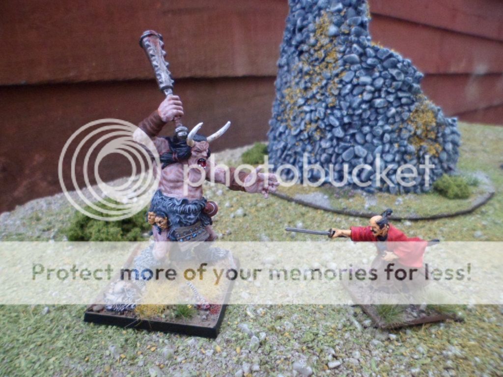 this is a bloodragon vampire and an Oni hellcreature or ogre on a recently scratchbuilt terrain, all 28mm of course!