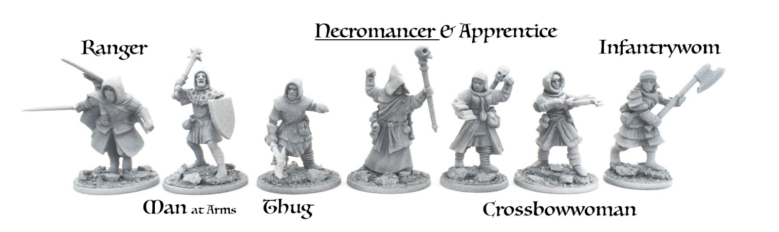 There's some minor conversions and sculpting in places because I couldn't resist... and miltipart kitbashes always need a little gap filling. There's also a few minor thematic elements to set the warbands apart, like the Elementalists all having open hands vs the Necromancers having clenched fists, but it will be the paintjobs that ultimately set them apart.