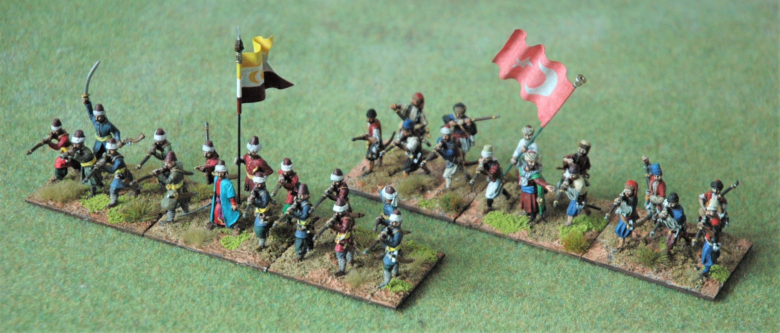These two units epitomise the colour and variety possible in an Ottoman army of this period. I plan on completing another unit of Bosniaks and then doing some Albanians and Arnauts. The aim is to field about 50% of the infantry as non-Kapikulu types.