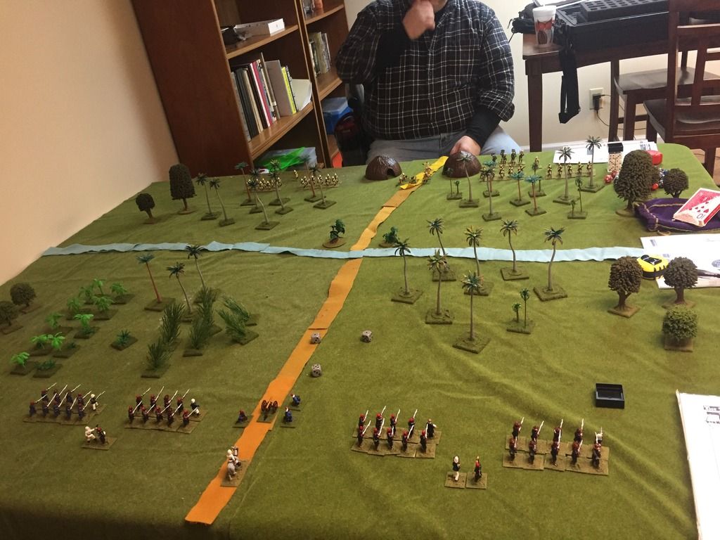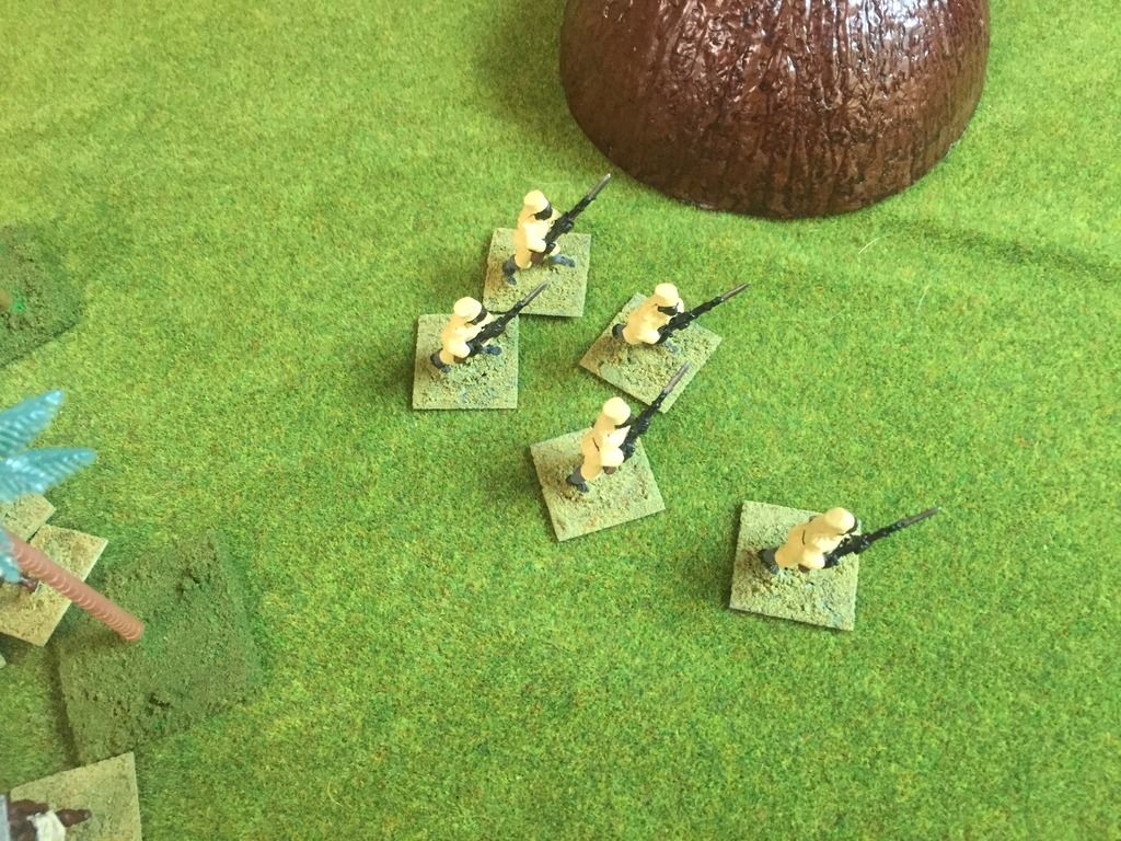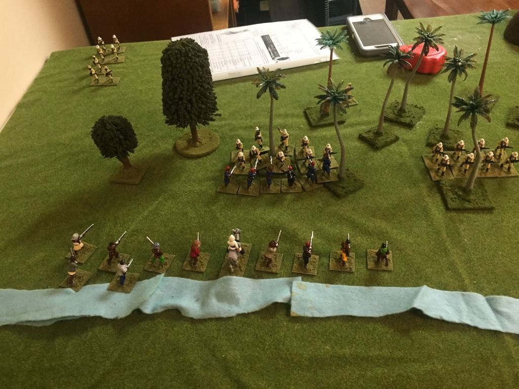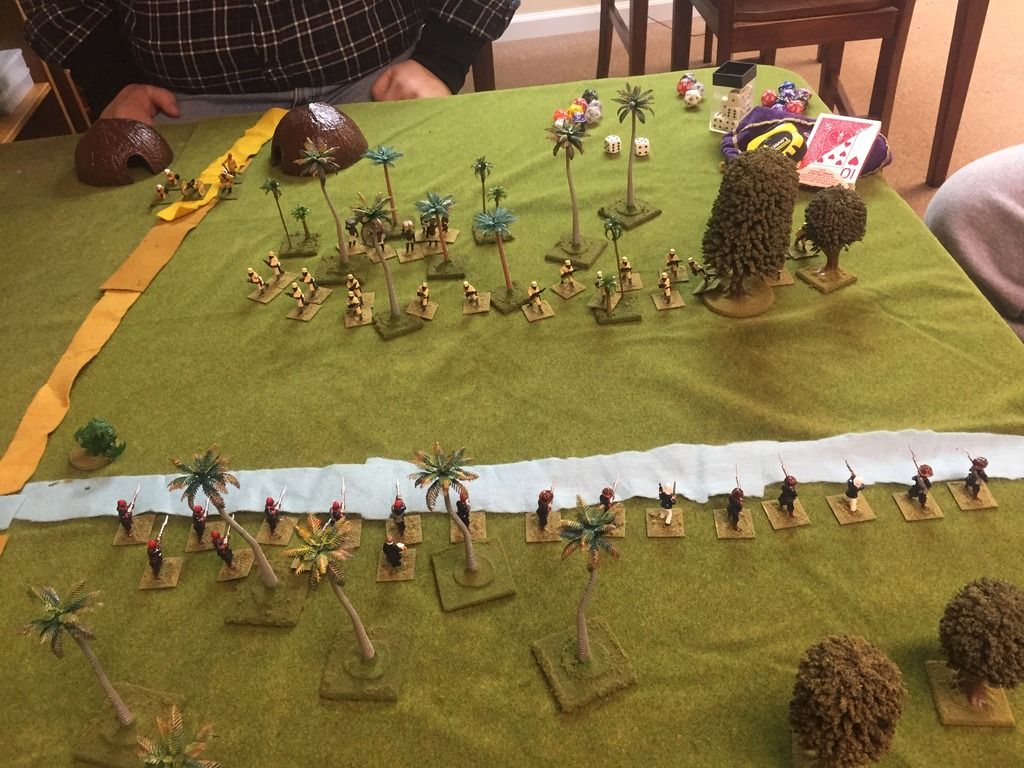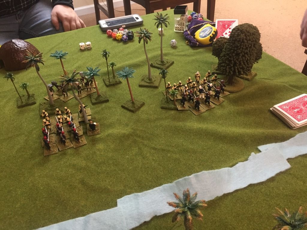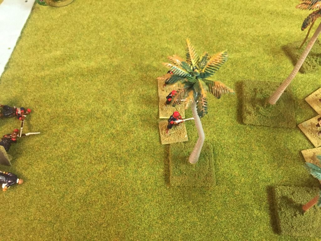 After much persuasion my friend added more palm trees and a banana plantation to his board and the Force Republique' was able to close to HTH - after charging across a river/stream - and give the German colonial forces a fight worth having.